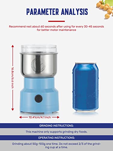 - PORTABLE SMALL SIZE, 200W MOTOR - Portable grinding machine can be held by one hand easily; The compact design occupies minimal counter space and is easy to store in a cabinet or drawer. [NOTE] Due to the very high speed of the motor, the machine will heat up slightly. And some burnt smell is normal due to motor running.
