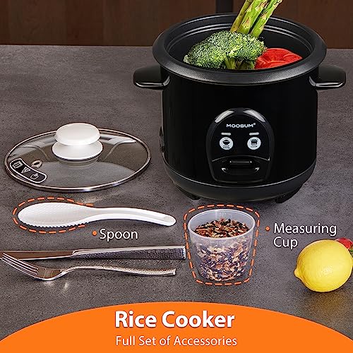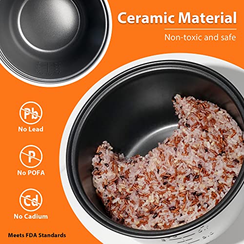 - [ACCESSORIES]: This cooker includes a durable ceramic nonstick inner pot, a spoon, and a rice measuring cup.