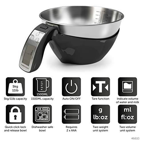 • Durable Materials: Robust stainless steel bowl with colour matched scale: Requires 2 x AAA batteries (not included)