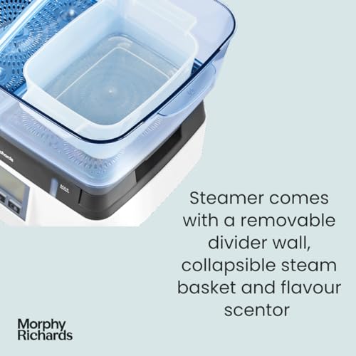 - Steamer comes with a removable divider wall, collapsible steam basket and flavour scentor to infuse food with herbs or spices