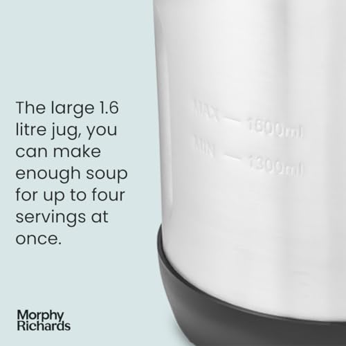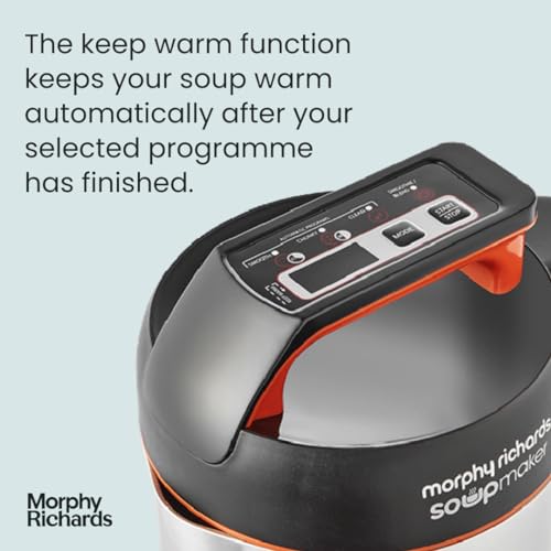 From the manufacturer Keep warm function This added function keeps your soup warm automatically after your selected programme has finished. Large capacity With the large 1.6 litre jug, you can make enough soup for up to four servings at once. Easy to clean After you’ve enjoyed your meal, just give the jug a quick rinse under the tap, wipe it with a soapy sponge and your soup maker is ready for next time. Soup just the way you like it The Smooth programme blends and cooks soup in just 21 minutes, while the Chunky programme cooks soup with a thicker consistency in 28 minutes.