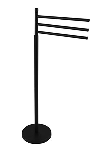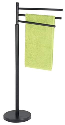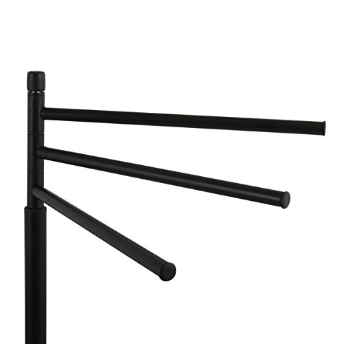 MSV Ella Towel Stand with 3 Moveable Towel Rails for Bath Towels and Other Textiles Towel Rail in Stainless Steel with Swivelling Rods Also as Small Clothes Rack, Matte Black
