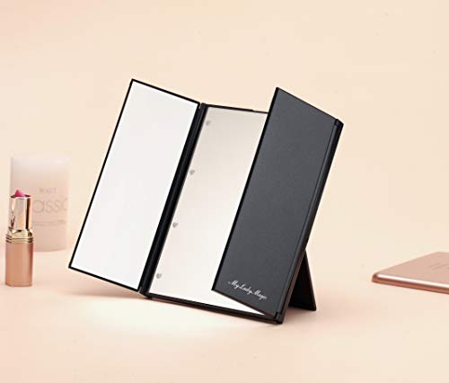 MyLadyMagic Lighted Trifold Makeup Mirror Compact for Cosmetics (Pearl Black)