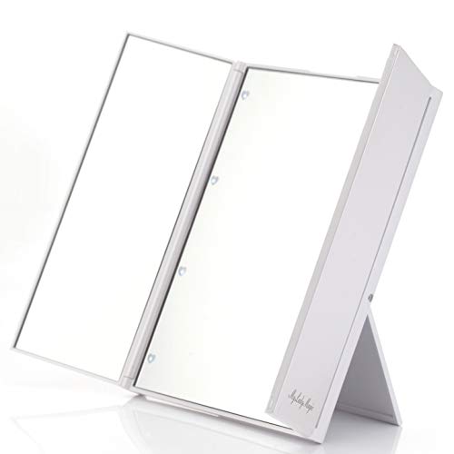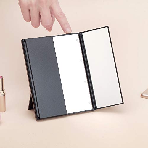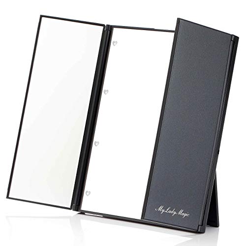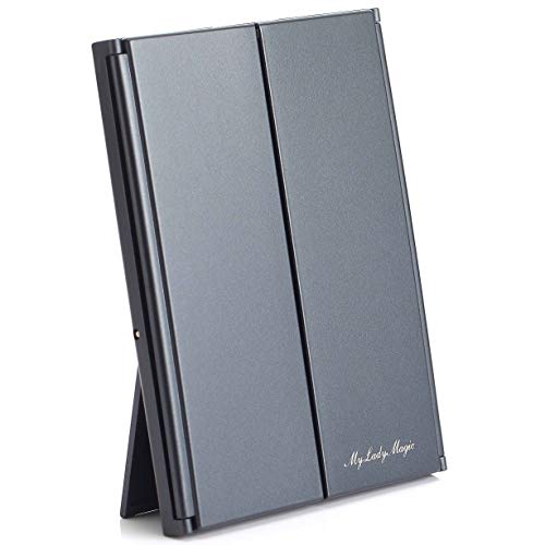 Home Bathroom Furniture MyLadyMagic Lighted Trifold Makeup Mirror Compact for Cosmetics (Pearl Black)