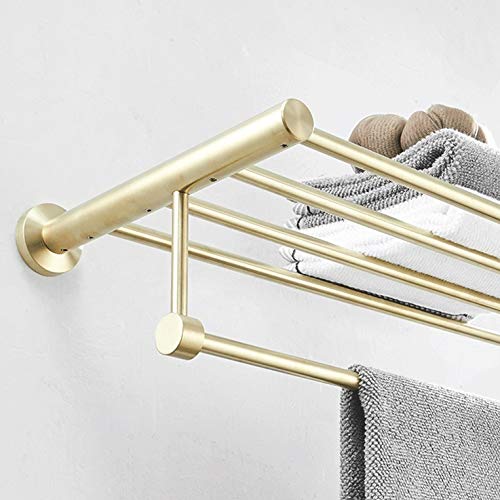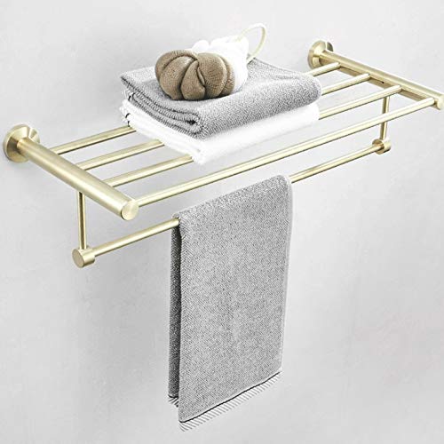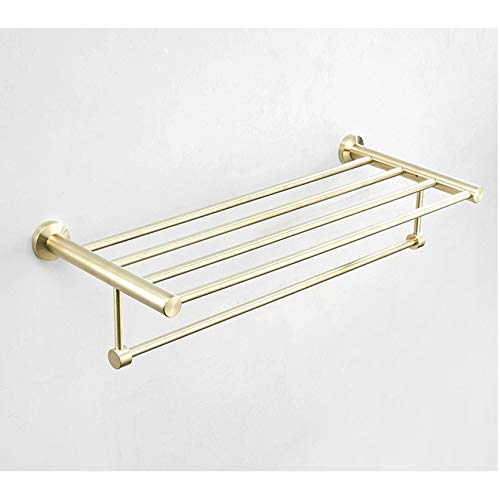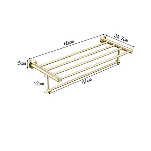 N/A Bathroom Towel Rack Golden Brush Towel Holder Storage Towel Rack Shelf Wall Mounted Brushed Stainless Steel