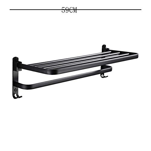N/A Black Towel Rack Space Aluminium Racks Elegant Black Towel Rack Hotel Bathroom Pendant Set Towel Bar Wall Mount Free Punch