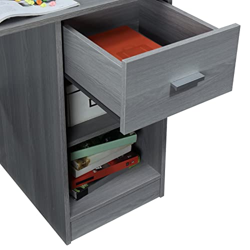 - A drawer and two open shelves keep confidential items and documents within easy reach.