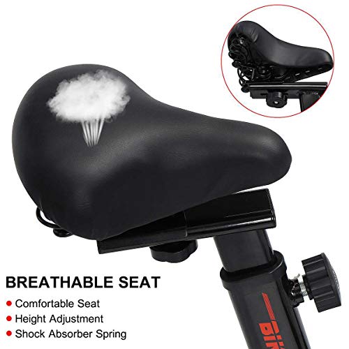 - 4KG flywheel and heavy-duty steel frame of the exercise bike guarantee the stability while cycling.