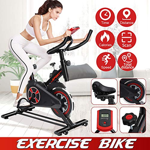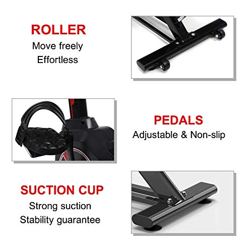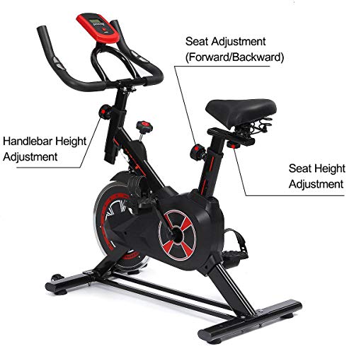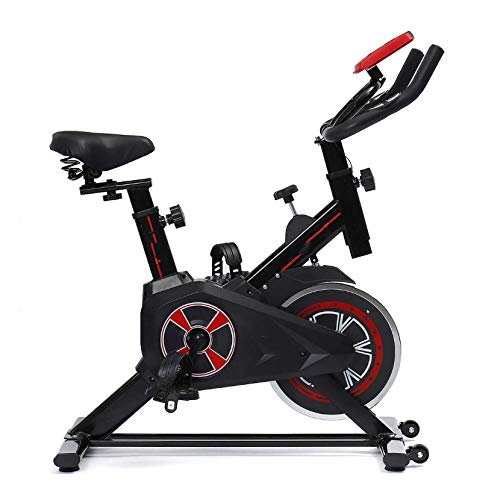 - The adjustable pedals on spinning bike protects you from a fast ride. Press the resistance bar to stop the flywheel immediately.Rolling wheels help you easily move this cycle machine.