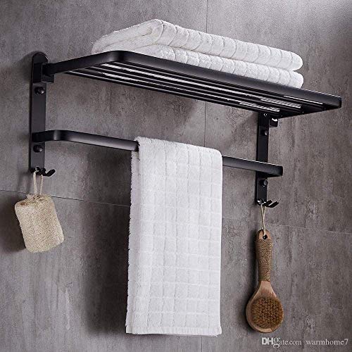 Home Bathroom Furniture N/A Towel Rack- Stainless Steel Towel Racks for Bathroom, Foldable Bathroom Shelf with Towel Bar Rod Hooks, Multifunction Double Towel Bars Hotel