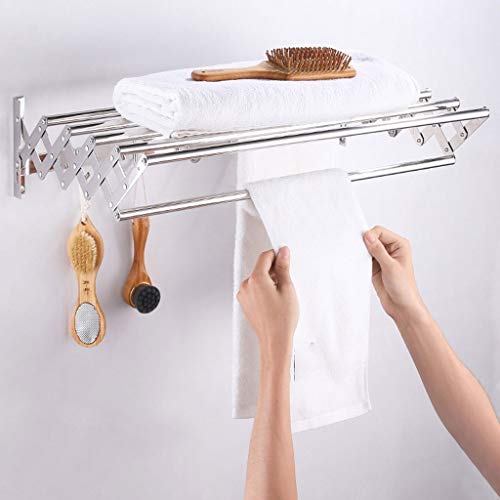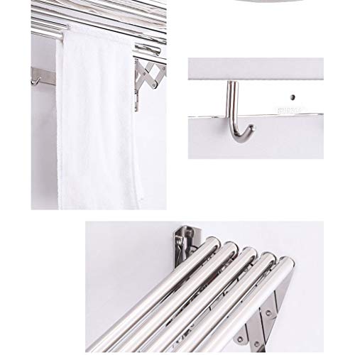 N/A Towel Rack Stainless Steel Wall Mount Drying Rack Solid Hook Toilet Bathroom Shelf Mobile Telescopic Folding Towel Holder Shelf