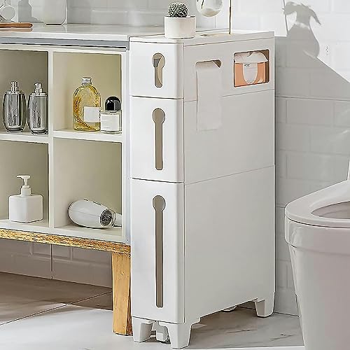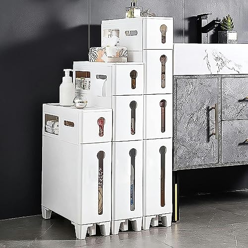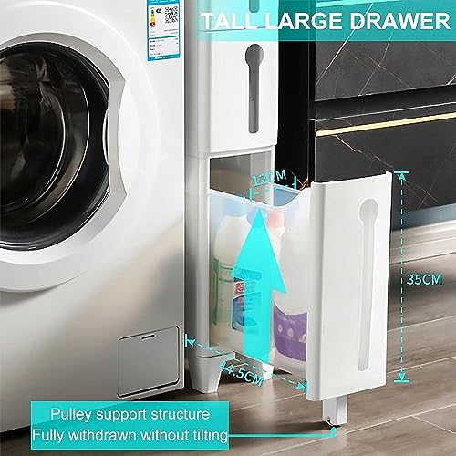 - 【Easy to move and clean】Narrow tall floor cabinet is designed with 2 rollers (rear wheels),which can be pulled out and pushed back by gently lifting the front.Smooth closed drawer storage space can be easily cleaned by simple wiping with wet cloth