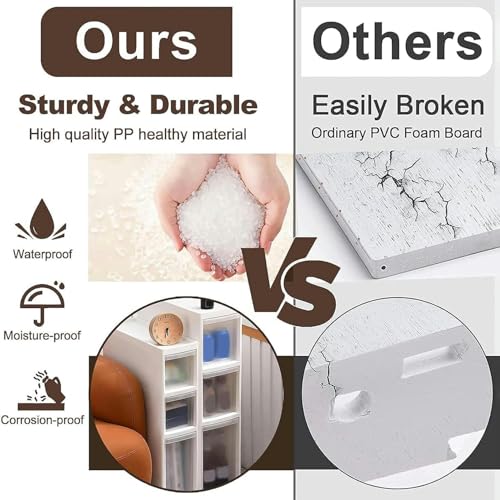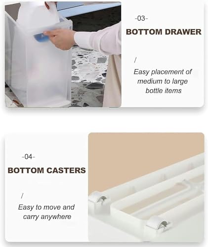 - 【Durable and sturdy】Unlike ordinary PVC storage cabinets,our bathroom floor cabinets are upgraded and polished with thickened PP material.The hard shell combines with plastic drawers,providing strong load-bearing capacity without shaking.At the same time,the entire cabinet has high toughness and is not easily scratched or deformed
