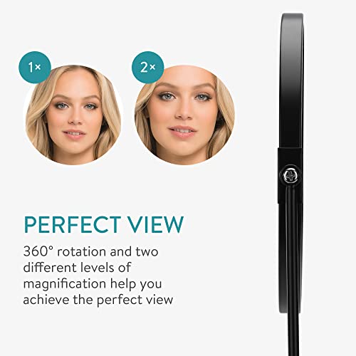 - DOUBLE SIDED MAGNIFICATION MIRROR: The double sided rotating mirror offers the perfect reflection for generic grooming tasks or up-close makeup application.