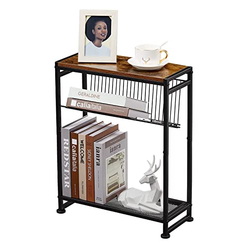 - 【All-match Classic Appearance】The combination of retro wood grain panels and black painted metal, this low-key modern industrial style makes it perfectly integrated into any interior decoration style. This modern industrial style magazine side table is very suitable for your bedroom or living room, looks elegant and generous, and adds a touch of industrial style to your home.