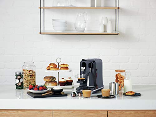 From the manufacturer A cup of coffee is much more than a break. It is your small ritual. Make it an unparalleled experience Choose Nespresso, do not settle for less: strictly-selected coffee coming in a matchless range of exclusive varieties, coffee machines combining smart design with simple state-of-the-art technology, refined accessories, indulgent sweet treats and services anticipating your every desire. What else? Nespresso Creatista Uno Coffee Machine by Sage, Black Sesame, Ultra Fast Heat Up Time, Easy Cleaning, Barista Style Coffee Machine Dive into a universe of creation with Nespresso Creatista Uno machine. Froth your milk the way you need it, thanks to the SAGE automatic steam pipe, and start making your very own latte art at home. With the Creatista Uno machine, you really will enter a new coffee world. Barista-style quality coffee The Nespresso Creatista Uno features a premium and robust design with high gloss in-mould coloured plastic body panels and satin in-mould coloured plastic splashback. A stainless steel barista milk jug with a pour spout designed specifically for Latte Art is included to achieve cafe quality micro-foam. Versatile Nespresso machine With adjustable settings for coffee volume, milk temperature and milk texture, you can have the perfect cup of black coffee (Ristretto, Espresso and Lungo), milk-based recipe (Cappuccino, Café Latte, Latte Macchiato, Flat White) and milk froth. Pour over ice to create your favorite hot drinks in iced form; iced coffee, iced lattes, ice macchiatos. Enhanced Experience Enjoy an enhanced coffee & milk experience and the possibility to easily create an authentic top-quality Latte Art coffee thanks to an innovative, automatic and expert steam pipe/milk frother capable of: Adjustable milk temperature (3 settings), Adjustable froth quality (3 texture levels), Temperature sensing and Fast / self-cleaning. High pressure pump and energy saving The 19 bar high-performance pump offers barista-style coffee every time, perfectly extracting the delicate flavour and premium aromas of each Nespresso coffee capsule and creating an incomparably dense and unctuous crema. The fast heat-up system reaches the ideal temperature in just 3 seconds and energy saving auto shut-off after 9 minutes. Complimentary Welcome Gift Each machine includes a welcome set with a range of Nespresso capsules with unique aromatic profiles. Try each Grand Cru to find your favourites. Order your Nespresso capsules through the Nespresso Club via mobile app, online, by telephone or in one of our Boutiques. Ultimate Coffee Quality Nespresso follows highly rigorous standards in selecting coffee. We create hermetically sealed and recyclable aluminum capsules as an optimum way to lock in freshness and provide exceptional taste. As a result, we offer a wide variety of 25 Grands Crus to satisfy every taste at any moment of the day. Creating Shared Value We are proud to seal our long-term commitment on sustainability and quality, celebrating our partnership with the Rainforest Alliance. We source more than 80% of our coffee from AAA farms and over 40% of all of our coffee from the Rainforest Alliance Certified farms. Nespresso Creatista Uno by Sage, Black Nespresso Creatista by Sage, Liquorice Nespresso Creatista Plus by Sage SNE800BSS Pump pressure 19 bar 19 bar 19 bar Fast heat-up 10 seconds 10 seconds 3 seconds Programmable, one-touch buttons Ristretto, Espresso, Lungo (Manual: Cappuccino, Latte Macchiato and Flat white) Ristretto, Espresso & Lungo, Cappuccino, Cafè Latte, Latte Macchiato, Flat White and milk froth Ristretto, Espresso & Lungo, Cappuccino, Cafè Latte, Latte Macchiato, Flat White and milk froth Milk based drinks Automatic steam wand with adjustable milk temperature (3 settings), froth quality (3 texture levels) Steam Pipe to create milk froth Steam Pipe to create milk froth Movable drip tray for large cups Pop out cup support Removable drip tray Removable drip tray Energy consumption class A-40% A-40% A-40% Automatic power off ✓ ✓ ✓ Water tank capacity 1,5L 1,5L 1,5L Dimensions (WxHxD) 39,3cm x 30,8cm x 17,1cm 39,3cm x 30,8cm x 17,1cm 39,3cm x 30,8cm x 17,1cm Special features - 8 beverage selections with adjustable settings (coffee volume, milk temperature and milk texture) - Auto frothing; 4 texture levels; 5 different milk temperature settings - Fast heat up in 10 seconds - 8 beverage selections with adjustable settings (coffee volume, milk temperature and milk texture) - Auto frothing; 4 texture levels; 5 different milk temperature settings - Fast heat up in 10 seconds - 8 beverage selections with adjustable settings (coffee volume, milk temperature and milk texture) - Auto frothing; 8 texture levels; 11 different milk temperature settings - Fast heat up in 3 seconds