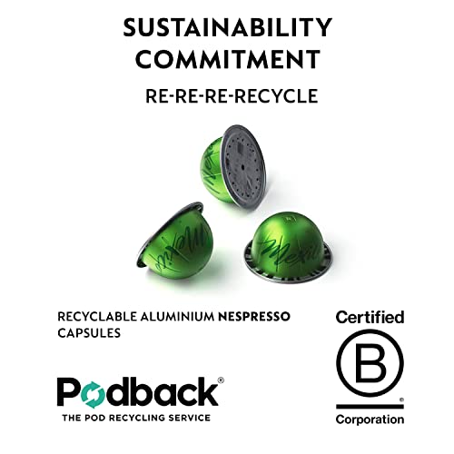 • LOW ENERGY CONSUMPTION - B corp Certified Company, made from 35% recycled plastic; Nespresso Vertuo pods are made with 80% recycled material and are fully recyclable; A+ energy consumption with automatic turn off after 2 minutes