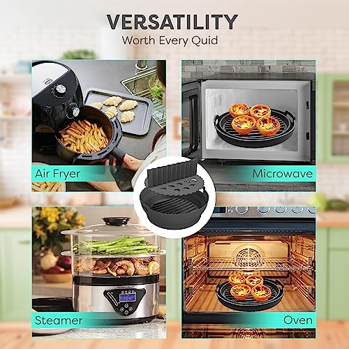- 《EASE OF USE》Experience seamless cooking, delicious meals and effortless cleanup with our non-stick air fryer silicone liner. Compatible with most air fryer brands, these liners can also be used with steamers, ovens, and microwave ovens for baking. Say goodbye to scrubbing and enjoy effortless food release, making clean-up a breeze.