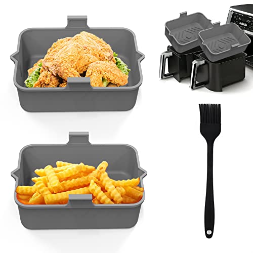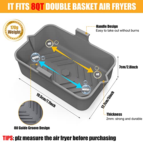 - Unique Oil Guide Groove Design: The air fryer tray's unique raised texture can keep grease away from the french fries and chicken and isolate residues, 2 times thicker handles of the top help easy to grip and more convenient to use. compatible with Ninja dual-zone air fryer AF300UK/AF400UK and Instant Vortex, Chefman, Bella, Philips, NuWave, and other brands of dual-zone air fryers to offer more cooking options while keeping the costs down.