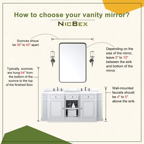 - None-Rusting Durable Frame: This vanity mirror fits for high-humidity bathroom, more protection on mirror side and frame gap to prevent mirror and alloy oxidized from humidity. Perfect display the lightweight and thin decorative bathroom remodel mirrors.