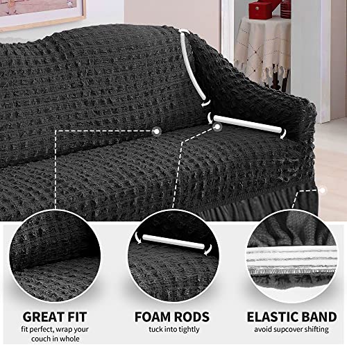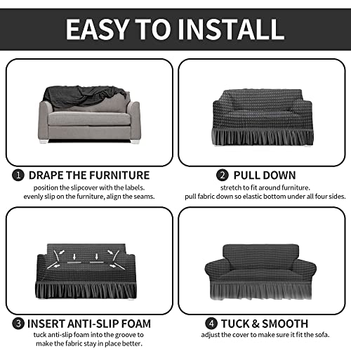 - ✨【Unique Design】 The bottom of this sofa cover has an elastic band design, which can strengthen the fixation and is not easy to slip, and it will not move easily when people or pets sit on it. Our slipcover comes with 8 foam rollers that you simply insert into the gap between the sofa and seat cushion for a secure fit.