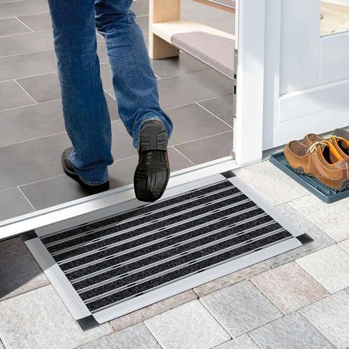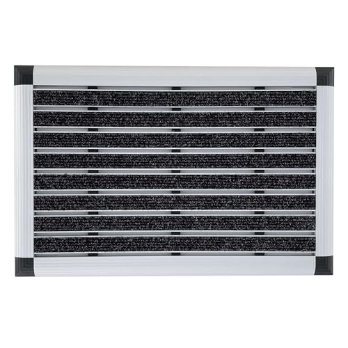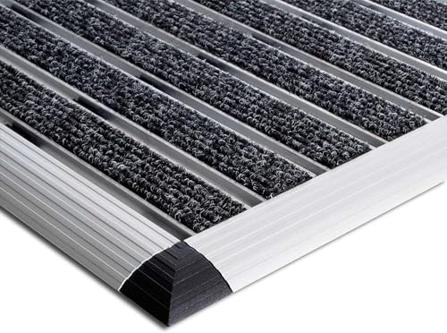 - Robust yet elegant metal door mat, with slatted needle felt strips, rounded off by the high-quality stainless aluminium frame.