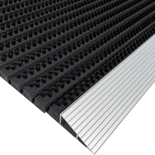 - All season outdoor mat with nylon scraper brushes inserrted in solid PVC bars.It is finished off with a ramped aluminium bar to make access more comfortable.