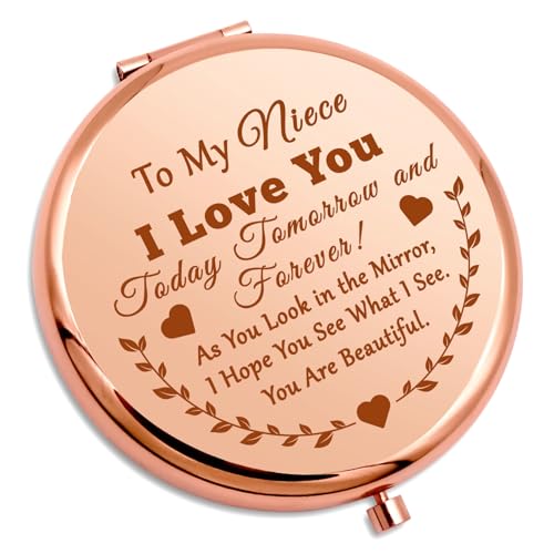 • Birthday gift for niece from aunt:You can give this compact makeup mirror to your nieces as a birthday Graduation,Christmas,appreciation,thanksgiving,Wedding,party gift,holidays,and more! Give this makeup mirror to her and tell her that your love will always be with her. You are Loved, inspirational makeup mirror gifts!