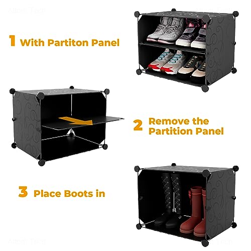 - ✔️【DIY Design】Combining versatility and simplicity, this portable cube storage comes in a black hue to fit any home décor and add a stylish touch to your room. This organizer rack can be customized to meet your specific requirements. Each cube has a divider, and you can remove one layer to accommodate boots, high heels, or other larger accessories. It will neatly organize your ever-expanding shoe collection while saving you valuable floor space.