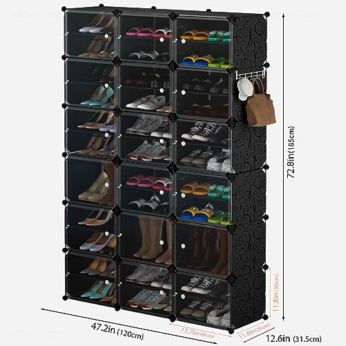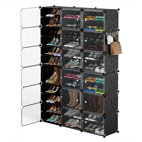 - ✔️【Premium Construction】This modern shoe rack features PP plastic panels with metal frames and ABS connectors. Sturdy plastic connectors ensure durability and stability, and improved load bearing capacity makes it suitable for large and heavy objects. Dust-resistant and waterproof PP plastic panels are easy to clean and will keep your shoes away from dirt. The clear doors allow you to quickly find shoes. With excellent reliability, this shoe organizer is perfect for your everyday organization.