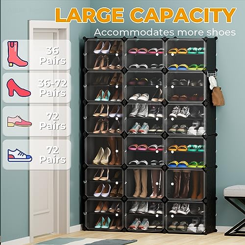 - ✔️【Multifunctional Storage Organizer】Instead of embarrassing dirty piles all over the place, you’ll enjoy a well-organized home with this shoe rack! This 6-tier shoe organizer box holds up to 72 pairs of adult shoes, providing plenty of space for storing your items. Single cube: 15.75"W x 11.8"D x 11.8"H. Load capacity per cube: 5-10 lbs. Full size: 47"W x 11.8"D x 70"H. Excellent size for your foyer, hallway, living room, wardrobe, closet, dormitory, terrace, cabinet, garage, garden and more.