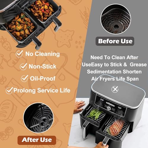 Ninja Air Fryer Accessories, 2Pcs Air Fryer Rack for Grill, Dehydrate, Silicone Air Fryer Liners, Disposable Paper Liner for Ninja Dual AF300UK A