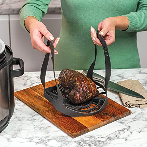 - Lift and remove pans, a whole roast chicken or roast meat from your Ninja Foodi Multi-Cooker