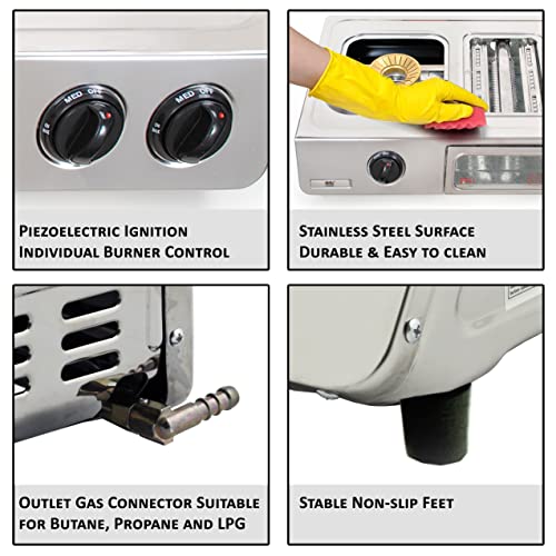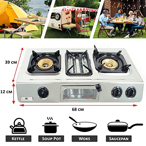- HEAT CONTROL - equipped with 3 independently adjustable burners. Regulate the flame power of each burner easily and precisely to get the exact temperature you're after. Heat range from simmer to boil.