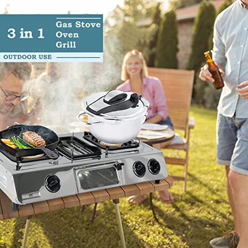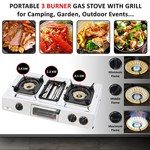 - SAVE TIME - With 3 powerful burners you not only enjoy the cooking experience but also finish it quickly. Cook up steak and boil potatoes at the same time with a total energy output of 33,000 BTU.