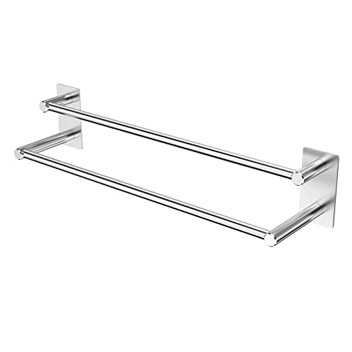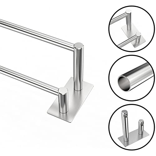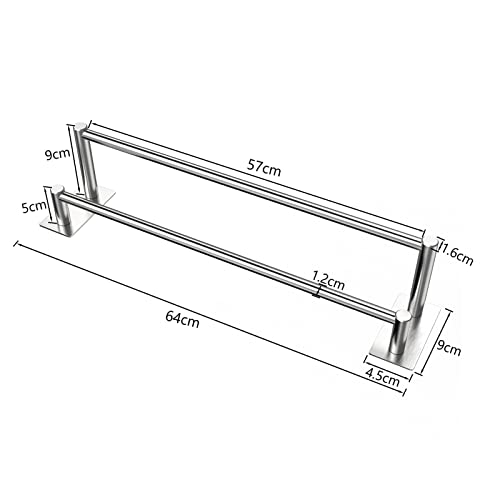 - 【Material/Size】Towel Rail are made of high quality 304 stainless steel, brushed surface, stylish and beautiful, corrosion resistant and rust-proof, they can remain intact even in humid environments. Bar length: double rod length: 60 cm |Practical length: 57 cm; The length is suitable for placing full size towels and does not need to be folded.