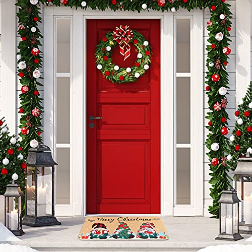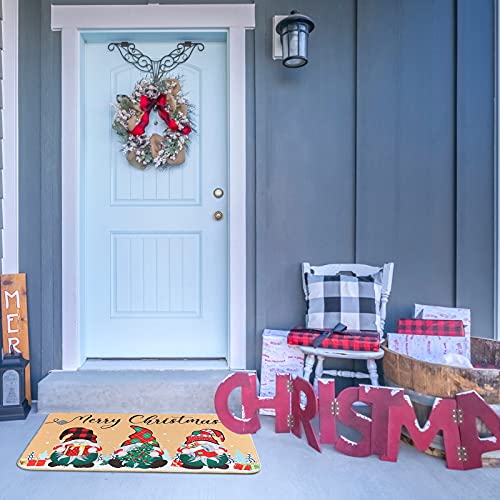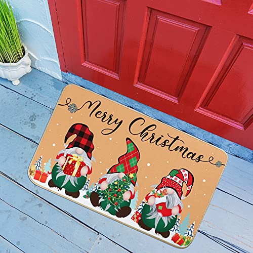 Nuanchu Merry Christmas Gnome Doormat Xmas Holiday Welcome Floor Mat Rugs for Front Door Funny Non Slip Rubber Back Winter Home Kitchen Entrance