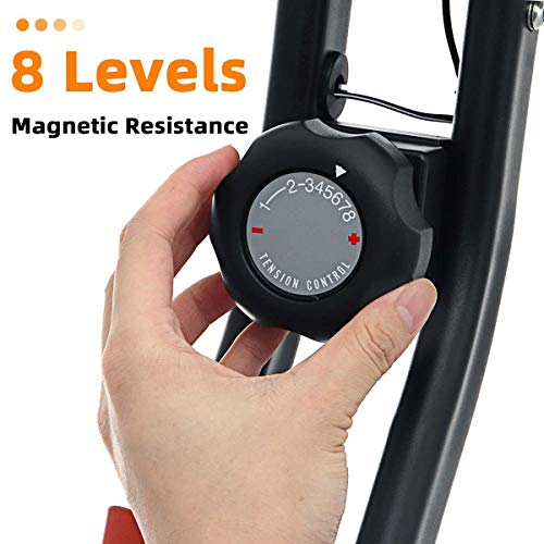 - 1.8KG Flywheel & 8 Levels Magnetic Resistance,The indoor exercise bicycle perfect for cardio.The bike is smooth & quiet, a range of adjustable resistance meet your requirement about the exercise intensity.