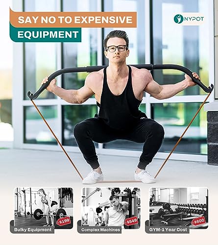 - MADE FOR TOP 1% - Workout at home, or use it as a travel workout equipment. Use our compact home gym system with the gym bands to stay on top..VERSATILE & COMPACT- This workout equipment for home workouts it's Simple and Effective. NYPOT total gym equipment for home it's great for decreasing joint pain due to progressive resistance..PREMIUM - NYPOT Exercise equipment for home workouts is comfortable & easy to use. Made from aircraft aluminum bar elite and double latex resistance bands..