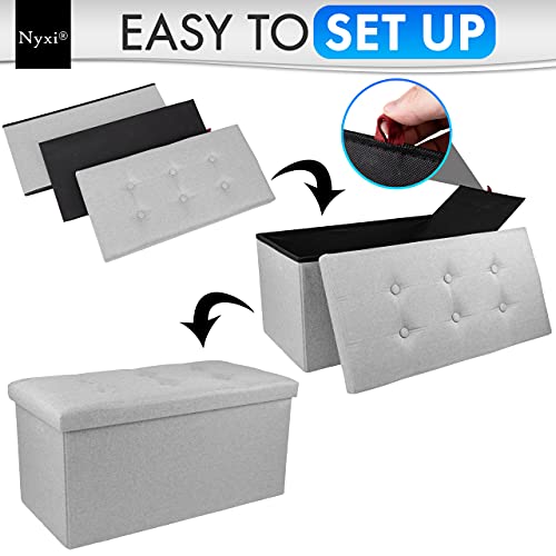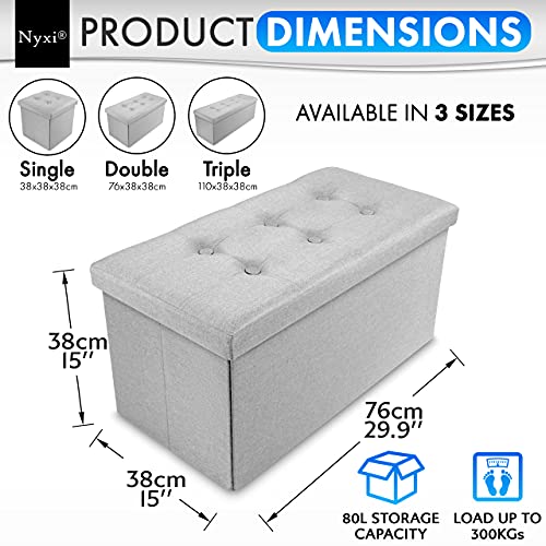 Nyxi Ottoman 76 * 38 * 38cm Foldable Storage Boxes Seat Foot Stool Storage Box with Lids for Kids Toys, Bedroom, Hallway, Living Room Light Grey