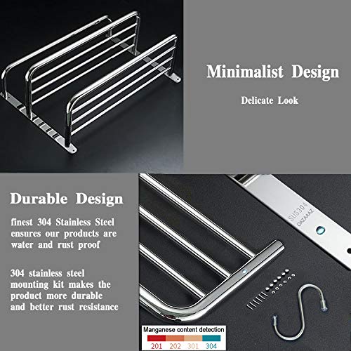 - [Material]: One of our biggest advantage over our competitors is that our towel Bars/Racks are made from 304 Stainless Steel versus plastic or nickel coated alternatives. Our use of the finest 304 Stainless Steel ensures our products are water and rust proof. Each of our towel bars/racks comes with a mounting kit that is also made from 304 Stainless Steel which adds to the durability of our products.