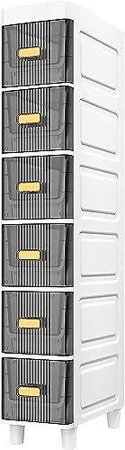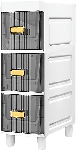 Home Bathroom Furniture OPSREY 7″ W Skinny Bathroom Storage Cabinet, Slim Toilet Paper Storage Cabinet with Clear Drawers and Casters, Bathroom Floor Cabinet Storage Car