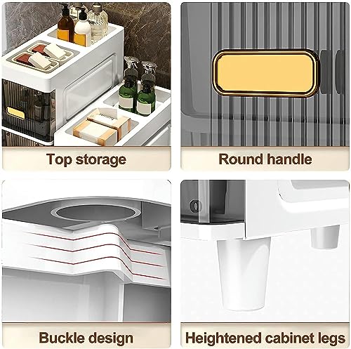 • ❖ Best Organizer: This bathroom drawer storage tower can maximize the available space in your bathroom while providing functional storage,you can place toiletries,creams,towels as you like.Unique translucent drawer design allows quick access to items