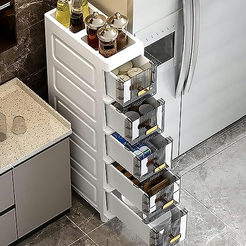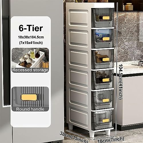 OPSREY 7" W Skinny Bathroom Storage Cabinet, Slim Toilet Paper Storage Cabinet with Clear Drawers and Casters, Bathroom Floor Cabinet Storage Car