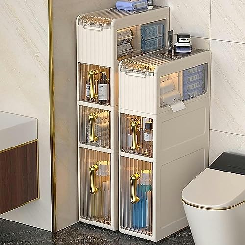 - ☀ Ample Storage Space: Thin Corner Floor Cabinet with various drawers and cabinets design, you can place your tissues, shampoos, creams, towels as you like. The lightweight slide-out bathroom floor cabinet helps you to make full use of space. Its premium performance can totally meet your demand of toilet storage.