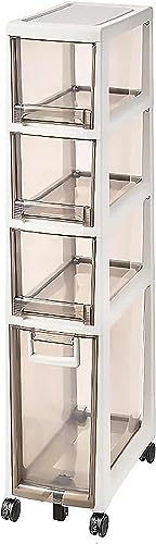 OPSREY Narrow Bathroom Corner Floor Cabinet, Small Narrow Storage Drawer Cart with Large Capacity Clear Drawers and Casters Slim Bathroom Cabinet