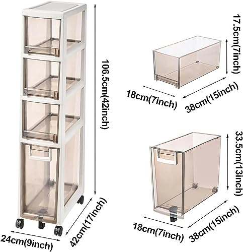 - 【Easy to Move】The narrow dresser tower with transparent drawers comes with 4 casters,with the help of 360° swivel casters,this storage unit is easy to move,which allows you to clean corners and small spaces