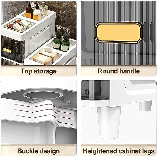 - 【Best Organizer】This bathroom drawer storage tower can maximize the available space in your bathroom while providing functional storage,you can place toiletries,creams,towels as you like.Unique translucent drawer design allows quick access to items