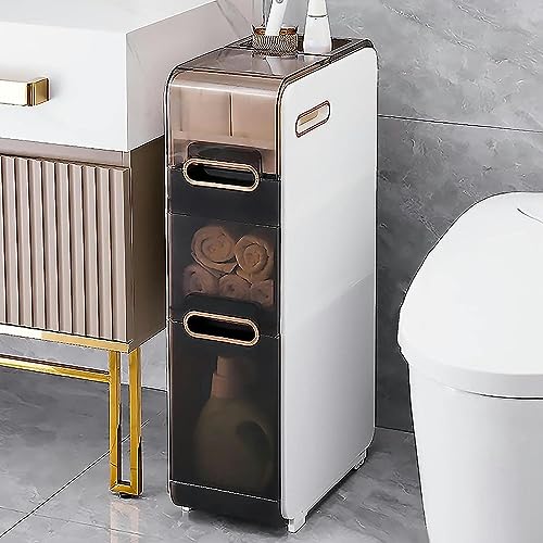 - 【Adequate storage space】All spaces in the slim bathroom storage cabinet can be stored.The top groove and open cover design allow for the placement of dental cups and toilet paper,respectively.Drawer designs with different heights classify and store your small,medium,and large items such as towels,bath supplies,and shampoo.Easily achieving room cleanliness