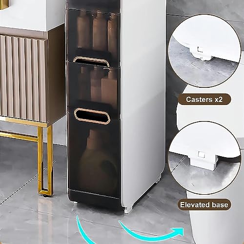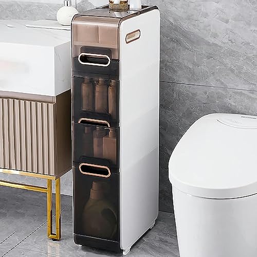 Home Bathroom Furniture OPSREY Narrow Bathroom Storage Cabinet with Drawer, Large Capacity Tall Slim Bathroom Floor Cabinet with Plastic Drawers and Casters Vertical Sto